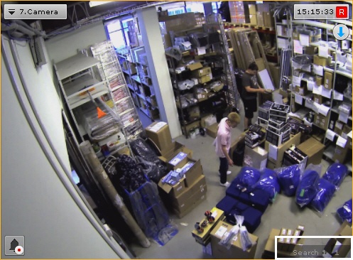 If the system has saved Forensic Search queries for a video camera, tabs for these queries are displayed in the lower-right corner of the corresponding viewing tile.
