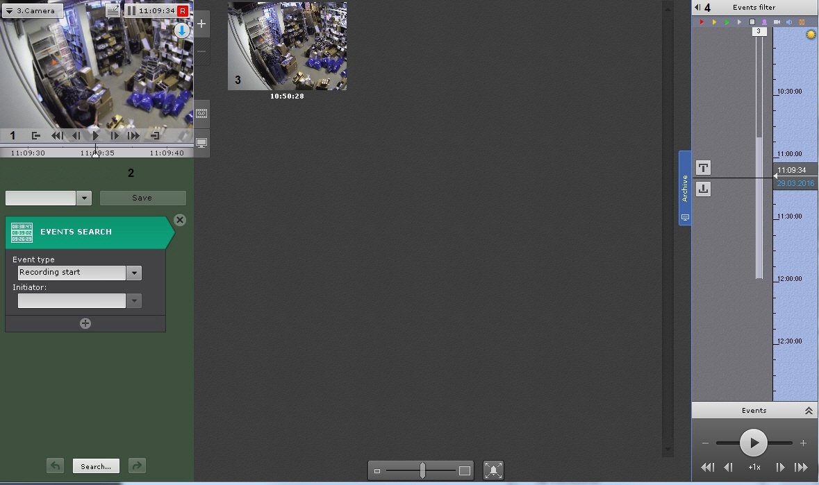 The visual layout of Archive Search mode is divided into the following 4 components: