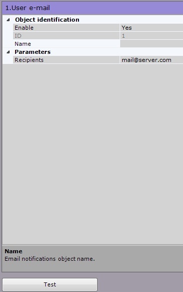 To check the E-mail notification from the Email notifier object, send a test message by clicking the Test button.