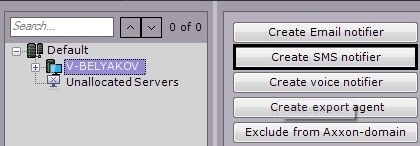 In the list of devices, select a Server object and click the Create SMS notifier button.