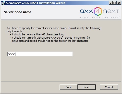 By default, the Axxon Next Server name is identical to the PC name. If the PC name contains forbidden symbols, you have to set an appropriate name for the Server according to the recommendations, and click the Next button.