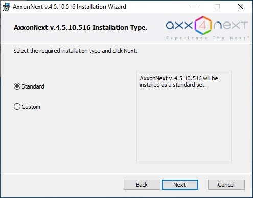 - Select the Axxon Next installation type in the dialog box by clicking the appropriate option button:
