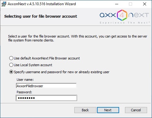 - Use default AxxonNext File Browser account.