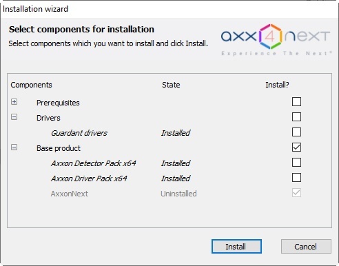 This installation package is intended only for Client updates. You cannot install it on a PC where Axxon Next was not previously installed.