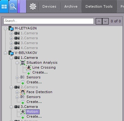 Axxon Next 소프트웨어 패키지에서 여러 유형의 검출 도구가 수신 데이터를 처리합니다.