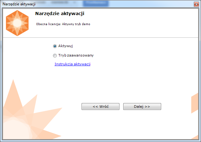 - Na stronie głównej narzędzia aktywacyjnego wybierz opcję Aktywuj i kliknij przycisk Dalej.