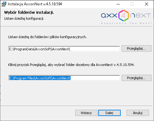 Ścieżka instalacji dla Axxon Next oraz baz danych może składać się wyłącznie z liter alfabetu łacińskiego oraz cyfr.