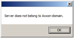 Jeśli Serwer, do którego Axxon Next się łączy, nie należy do żadnej Domeny Axxon, zostanie wyświetlona wiadomość: