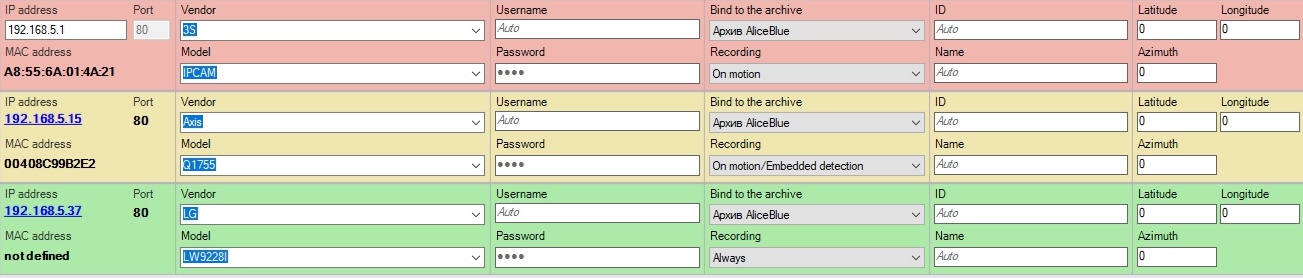 1Uruchom z domyślnymi ustawieniami Axxon NextUrządzenie IP jest dodawane do konfiguracji z domyślnymi ustawieniami (determinowanymi przez Axxon Next). Dodawanie urządzeń z tym trybem zmienia ustawienia urządzenia.