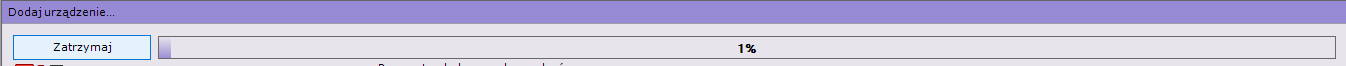 Gdy Kreator zostanie otwarty przy pierwszym uruchomieniu Klienta, automatycznie rozpocznie się procedura wykrywania nowych urządzeń. Przy kolejnych uruchomieniach, aby uruchomić Kreator, należy nacisnąć przycisk Wyszukaj. Wyświetlony zostanie pasek postępu reprezentujący proces odnajdowania urządzeń.