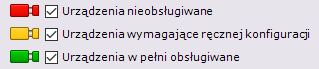 1. Ze względu na status.  Aby ukryć urządzenia z danym statusem, odznacz odpowiednie pola wyboru.