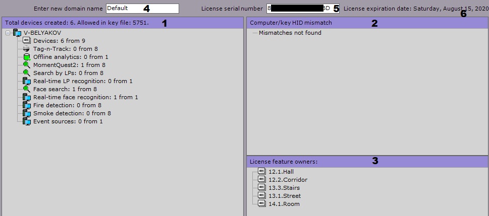 Można także zobaczyć numer seryjny licencji (5) oraz datę wygaśnięcia (6).