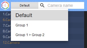 Aby wyznaczyć grupę kamer do wyświetlenia, naciśnij przycisk Default, a następnie wyznacz odpowiednią grupę z listy.