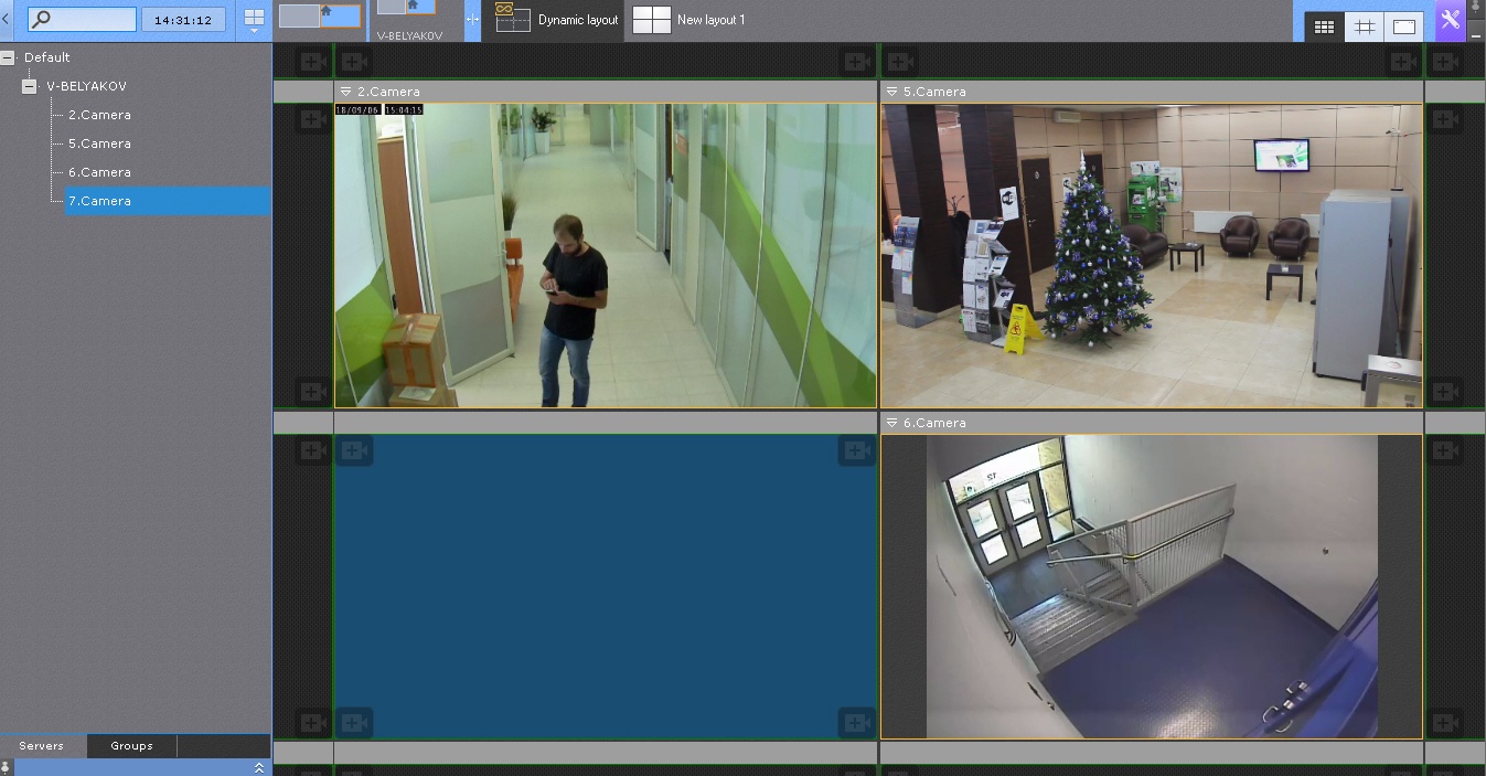 By default, Dynamic Layout is empty. You can add cameras from the object panel (see Objects Panel) one by one or several at once (a group, all video cameras of the Server or Axxon Domains).