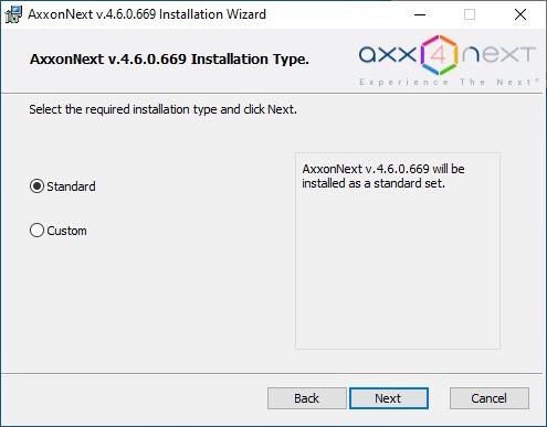 - Select the Axxon Next installation type in the dialog box by clicking the appropriate option button: