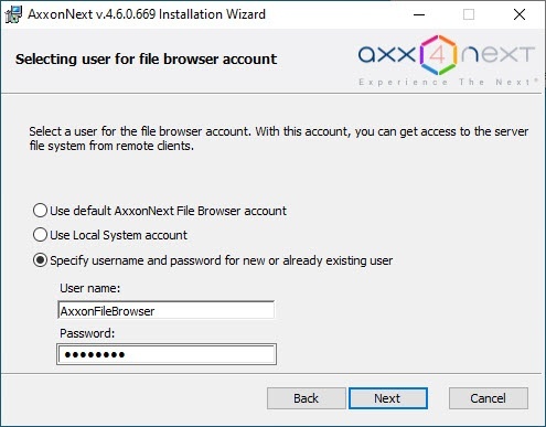- Use default AxxonNext File Browser account.