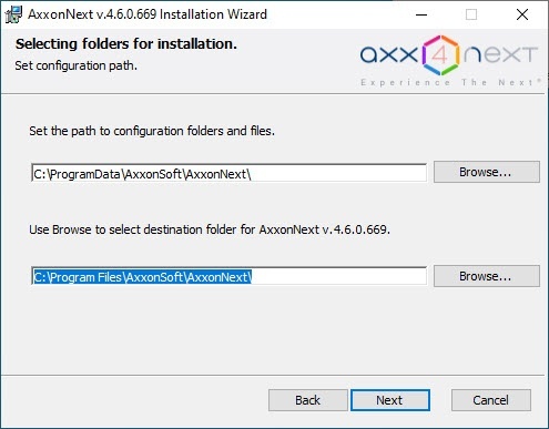 By default, Axxon Next will be located in the C:\Program Files\AxxonSoft\AxxonNext\ folder.