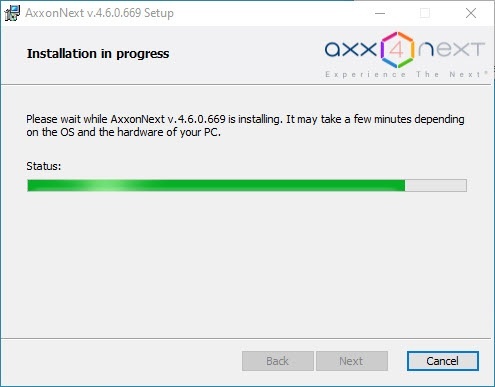 Installation of Axxon Next is then performed.