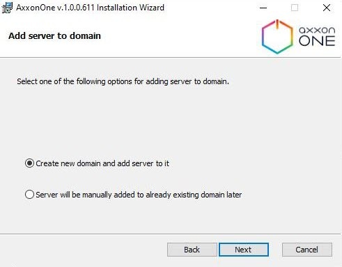 - Naming the new Axxon Domain according to the instructions in the section Creating a new domain, when attempting to connect to one of the Servers excluded in step 1.