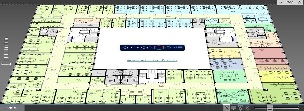 Select a video camera from the list on the video camera panel by clicking on it and, while holding down the mouse button, move the cursor to the empty map background and then release the mouse button.