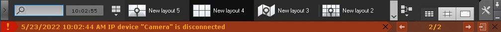 Messages about system errors which have occurred are displayed in real time on a dynamic error panel. When there are no unaccepted errors, this panel is not displayed; when there are such errors, it is displayed in Axxon One's Layouts tab.