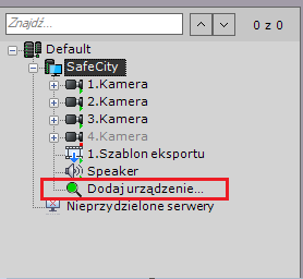 Aby otworzyć Kreator Dodawania Urządzeń IP, naciśnij link Dodaj urządzenie znajdujący się na dole listy urządzeń na danym serwerze.