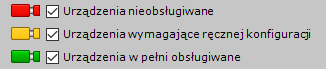 1. Ze względu na status.  Aby ukryć urządzenia z danym statusem, odznacz odpowiednie pola wyboru.
