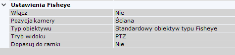 Kamery typu fish-eye można skonfigurować w grupie Ustawienia Fisheye.