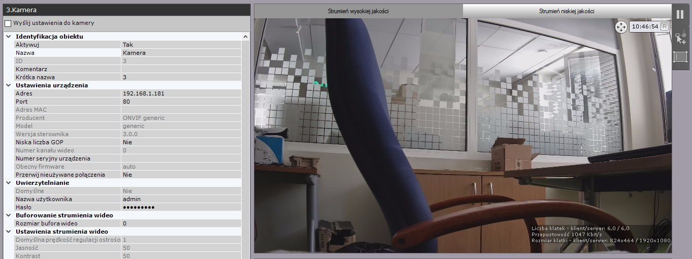 Strumienie wideo można skonfigurować w oknie podglądu kamery. Jeśli kamera wspiera multistreaming, można wprowadzić osobne ustawienia dla każdego strumienia: strumienia wysokiej oraz niskiej jakości. Podczas tworzenia urządzenia IP ze strumieniem wysokiej jakości, strumień o wyższej jakości jest obierany.