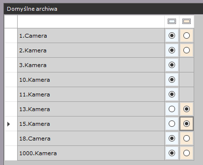 3. Aby zmienić domyślne archiwum dla danej kamery, zaznacz odpowiednie pole kodowane kolorem.
