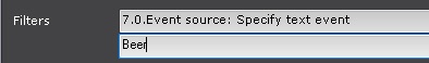 | Źródło zdarzenia | W opisie obiektu Źródło zdarzenia należy sprecyzować słowa lub frazy będącej wyzwalaczem. Gdy fraza lub słowo wystąpi w podpisach, makro zostanie wyzwolone. Przykład: filtr wyzwoli makro, gdy słowo "Beer" wystąpi w podpisach. Jeśli makro ma być wyzwalane poprzez jednoczesną kombinację słów tudzież wartości, użyj klamr w celu utworzenia logicznego AND; przykład: {Beer} {Belgium} |