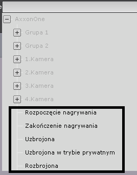 | Domena Axxon | Lista dostępnych zdarzeń, grup, lub urządzeń. Jeśli zaznaczysz zdarzenie z Domeny Axxon, makro zostanie zainicjowane, gdy zdarzenie jest odebrane z jakiegokolwiek obiektu w Domenie Axxon. | |