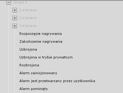 Grupa kamer | Lista dostępnych zdarzeń. Jeśli wybrane zostanie zdarzenie dla całej grupy kamer, makro zostanie zainicjowane, gdy zdarzenie jest otrzymane z jakiejkolwiek kamery w grupie. | |