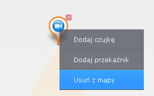 Aby usunąć obiekt z mapy, naciśnij przycisk w pobliżu ikony obiektu; można także prawym przyciskiem myszy nacisnąć na ikonę w celu wyświetlenia menu kontekstowego, a następnie nacisnąć w nim Usuń z mapy.
