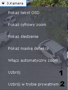 Aby uzbroić kamerę, wybierz jeden z dwóch parametrów w menu kontekstowym okna podglądu: