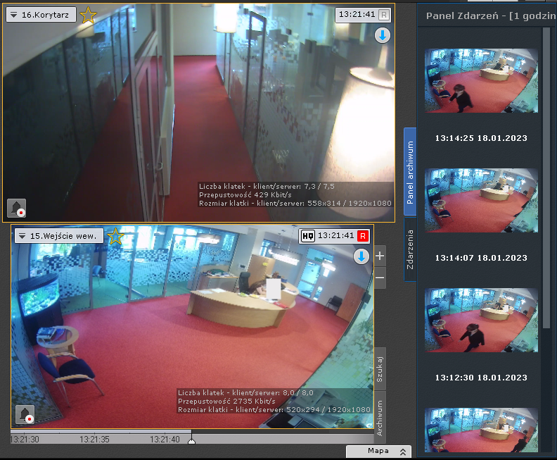 Istnieje możliwość szybkiego podglądu zdarzeń wygenerowanych przez narzędzia detekcji działających dla danej kamery z dowolnego ukadu. Aby przejść do podglądu, wykonaj następujące kroki: