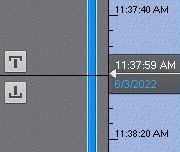 Lewym przyciskiem myszy naciśnij na wskaźnik (1), a następnie przeciągnij go na odpowiednią pozycję na linii czasu. Alternatywnie, istnieje możliwość naciśnięcia lewym przyciskiem myszy na lewą część linii czasu.