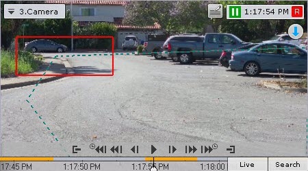 Gdy przeglądasz archiwum w zasięgu 1 sekundy od chwili wyzwolenia narzędzia detekcji, wizualne elementy narzędzia detekcji, które zostało wyzwolone, będą widoczne w podglądzie wideo.