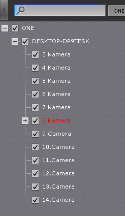 Aby zaznaczyć wszystkie kamery w domenie Axxon, zaznacz pole wyboru przy nazwie domeny w Panelu Obiektów (zobacz: Panel Obiektów).