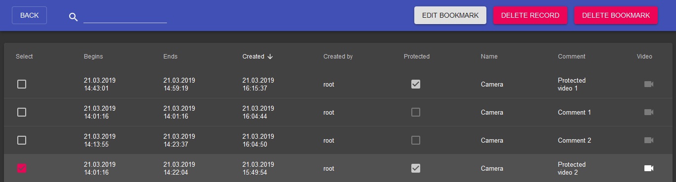 Aby przejść do wideo przypisanego do zakładki, naciśnij przycisk w kolumnie Video.