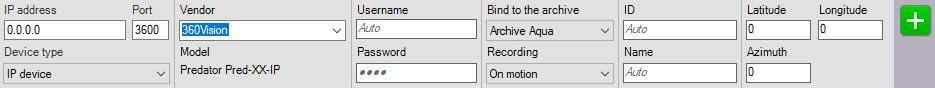 IP address, Port, Vendor, Model, Login, Password, Identifier, Object name, Latitude, Longitude, Azimuth, Archive name, Recording mode