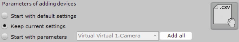 You can create IP devices in bulk by importing their parameters from a CSV file.