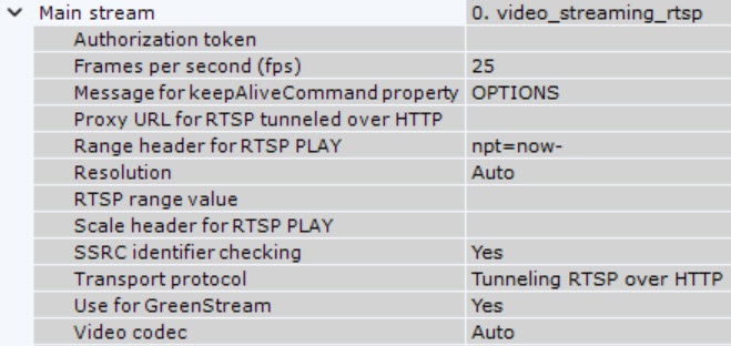 To receive the RTSP stream via HTTPS, select the Tunneling RTSP over HTTP value for the Transport protocol parameter.