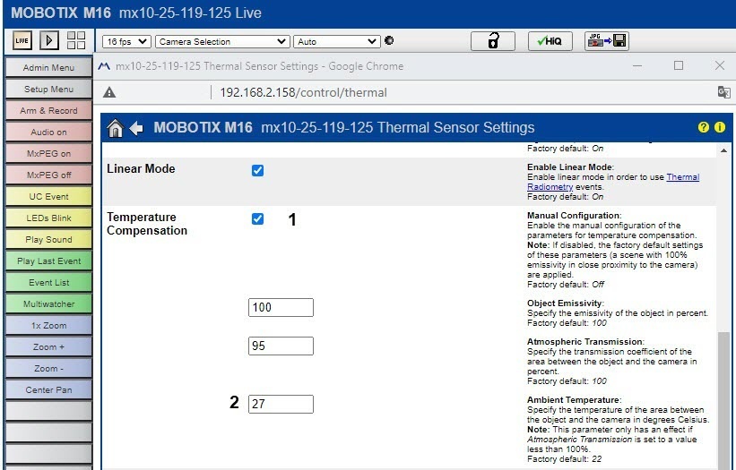 - Set the Temperature Compensation checkbox (1).