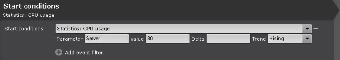 6. If necessary, you can specify several event and/or statistical conditions to start a macro (see Configuring start conditions).