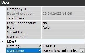 As a result, the user is registered and added to a specific role. When an LDAP user connects, the username specified in the Axxon One settings and the password from the LDAP catalog are used.