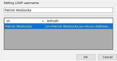 A window with all users of the LDAP catalog opens. - Use the search at the top of the window to find a user or select a user from the list manually.