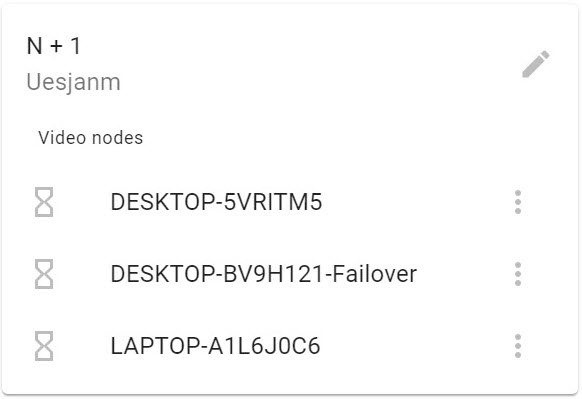 The configuration is now created, and the nodes are now automatically started. "Failover" string will be automatically added to the name of the backup node. - Merge all nodes into a single Axxon-domain (see Connecting to a Node and Configuring of an Axxon domain).