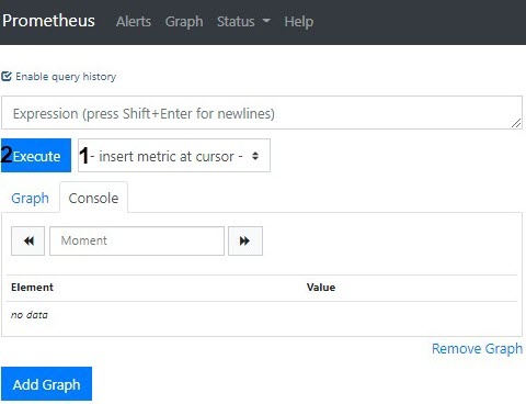 The service interface allows viewing metrics as a table or graphs. To run a query, do the following: