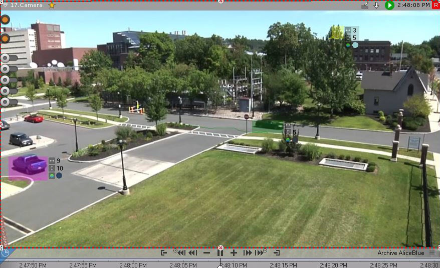 If object tracking is activated in the Surveillance window, then the properties of tracked objects (width and height as a percentage of the width or height of the frame) are displayed when viewing video fragments found using the Search in archive.